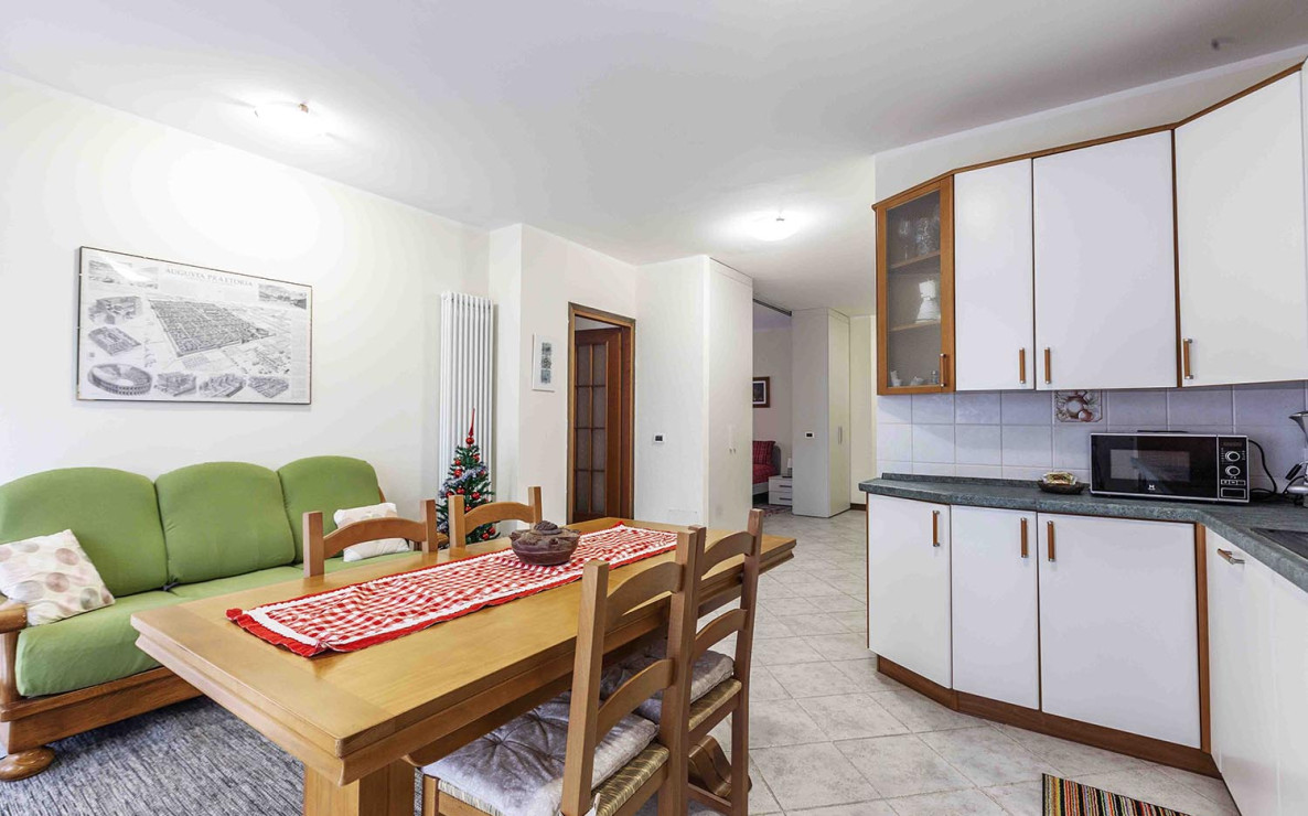 L’appartamento Aosta si trova nel piccolo condominio in via Esperanto in una posizione tranquilla a pochi passi dalla via pedonale di Aosta, da supermercati e da tutti i servizi e dispone di 1 posto auto presso il parcheggio condominiale non custodito.
