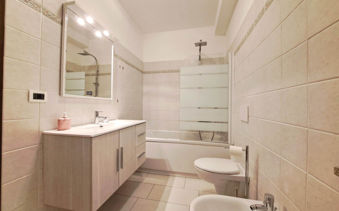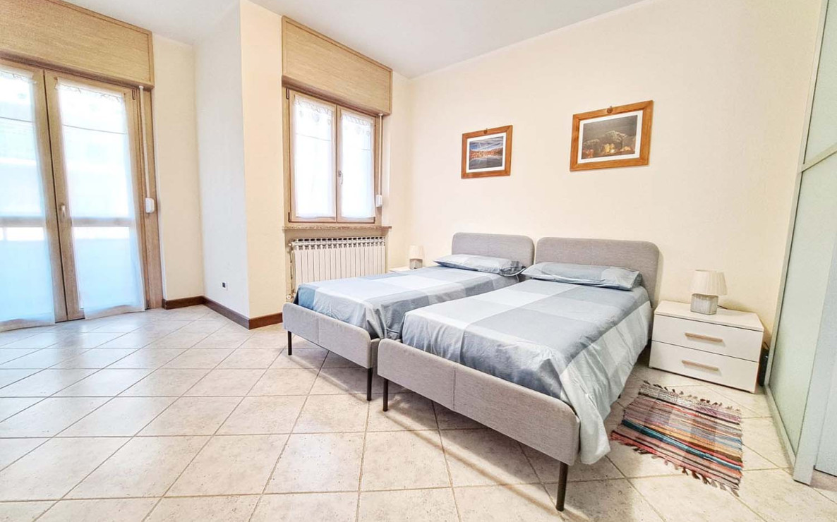 L’Appartamento Aosta (90mq) è stato ristrutturato a dicembre 2023, è situato al primo piano e dispone di due balconi e due bagni.